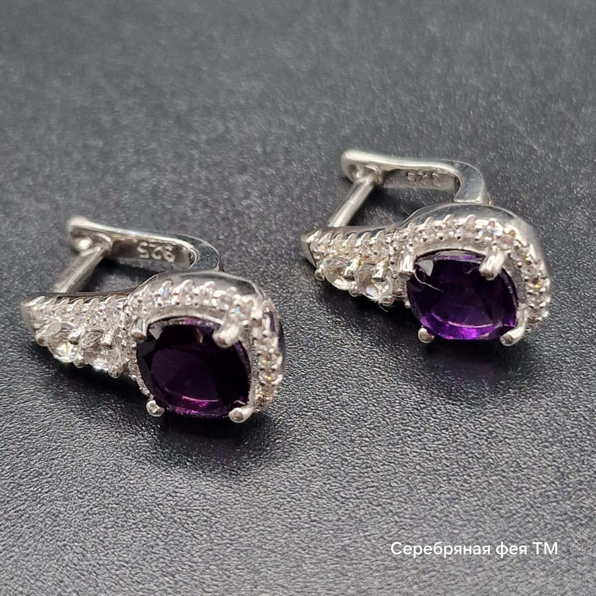 2700р, #аметист ы, #фианит ы, вставка 7*7 мм серебро Таиланд #серьги