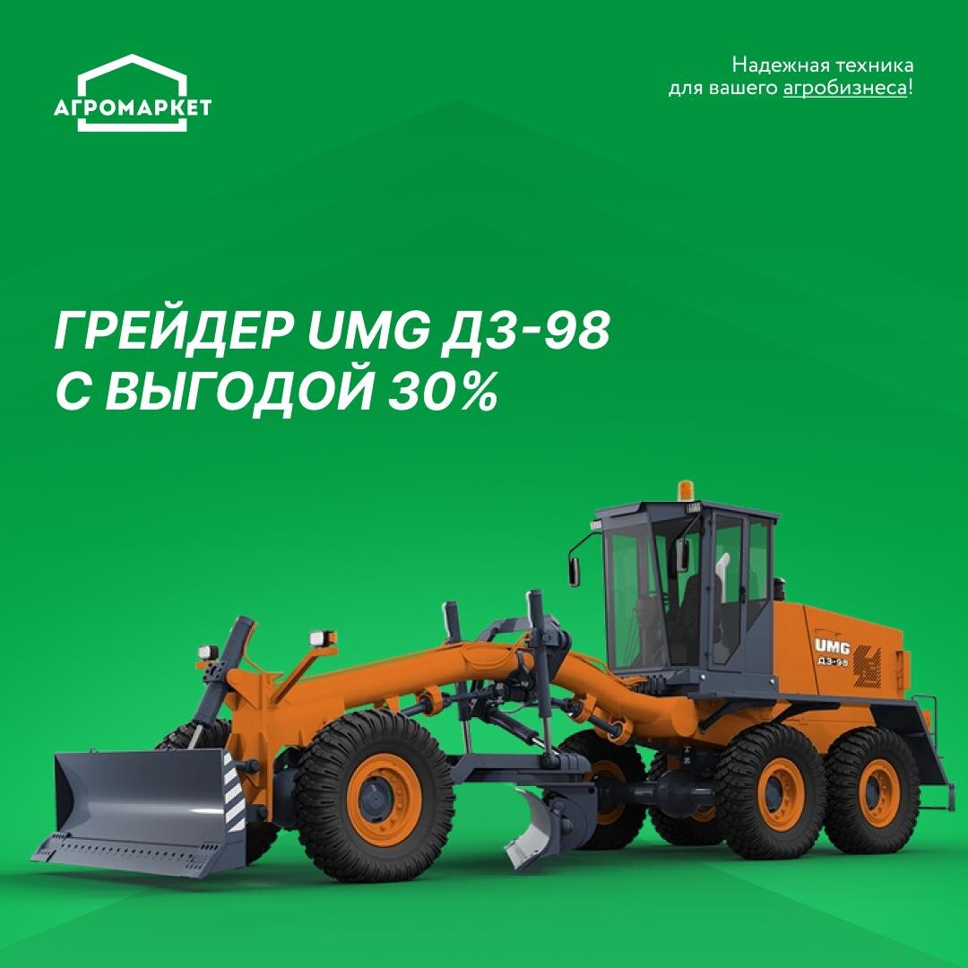 Грейдер UMG ДЗ-98 — техника, которая закрывает сразу две задачи: качество и экономичность Машина создана для тяжёлых условий: формирование полотна, планировка, очистка дорог — всё это ДЗ-98 делает уверенно и без лишних пауз. В Агромаркете грейдер доступен по специальнрой цене – 8 100 000₽, а по программе ДОМ.РФ его можно взять в лизинг с удорожанием от 4%. Дополнительно действует субсидия 30% от Министерство агропромышленного комплекса Пермского края, что заметно снижает итоговую стоимость для хозяйств и подрядчиков. UMG ДЗ-98 — это мощный двигатель, удобная кабина, высокая манёвренность и производительность, которая ощущается с первых часов работы. Техника подходит тем, кому нужна надёжная машина для круглогодичных задач и стабильный ресурс на долгие годы. Для подробной консультации и расчёта лизинга обращайтесь к нашим менеджерам: +7 (922) 332 48 06.