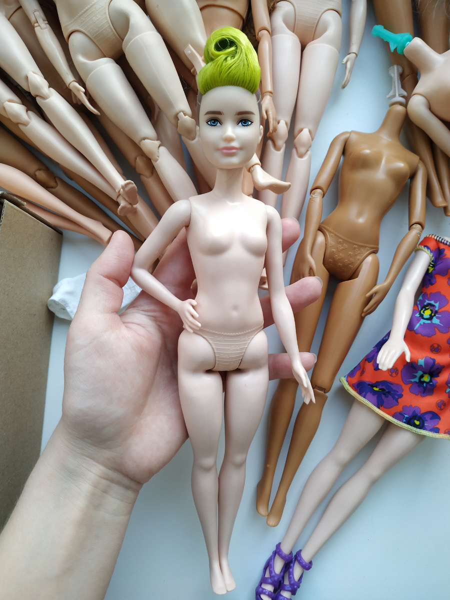 Барби Fashionistas 124 живёт у меня уже больше трёх лет. Её подарили мне в 2022 году вместе со множеством других Барби, и конкретно эта девочка стала одной из самых-самых любимых в коллекции. Она приехала ко мне на родном теле с немного помятым в пути ирокезом, но в целом девочка была отличная - с практически идеальным мейком и не слишком распушёнными волосами. Изначально эта кукла выпущена на петит-теле и предстаёт в образе этакой девочки-сорванца. Промо Fashionistas 124 Кукла стала весьма популярна у коллекционеров в своё время. Во-первых, благодаря молду Скиппер 2010 года - почти все Барби из серии Fashionistas, выпущенные на нём, в итоге стали хитовыми. Во-вторых, внешность у куклы оказалась очень уж примечательной. В Россию девочку, судя по всему, не завозили или почти не завозили. Во всяком случае я не припомню её в магазинах, а все желающие покупали эту Барби за рубежом. Кукла довольно долго жила у меня на родном теле, так как подходящего по цвету подвижного не находилось. Ба