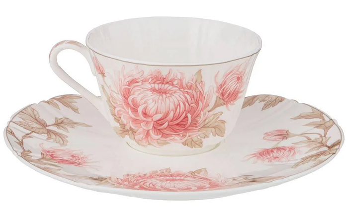 Это было года три назад, или даже пять, но это не так уж и важно. В магазине, среди расставленных кружек и чашек, я увидела чайную пару. Невесомую даже на вид и настолько нежную, что даже я, человек спокойно относящийся к чашкам, остановилась и замерла. На ней цвели хризантемы и я пропала, но отдавать больше полутора тысяч за чашку с блюдцем казалось полным безумием. Потом я подходила к ней каждый раз, когда была в этом магазине и убеждала себя, что такую нежность можно разбить, это дорого и наш выбор - могучие вёдра, в которые можно залить пол-литра кофе разом. Чашка так и оставалась мечтой, которая вспоминалась иногда, но полторы-две тысячи всегда находилось куда пристроить. Хризантемы в мечтах становились всё нежнее и фарфор всё прозрачнее. И вообще это оказались астры, но это тоже никак не меняло дело. Как неделю назад разговор с мамой свернул на эту чашку, теперь уже и не вспомню, но мама сказала:Дочь, а давай я тебе её подарю на Новый год?" И мы заказали сразу же, немного другую,