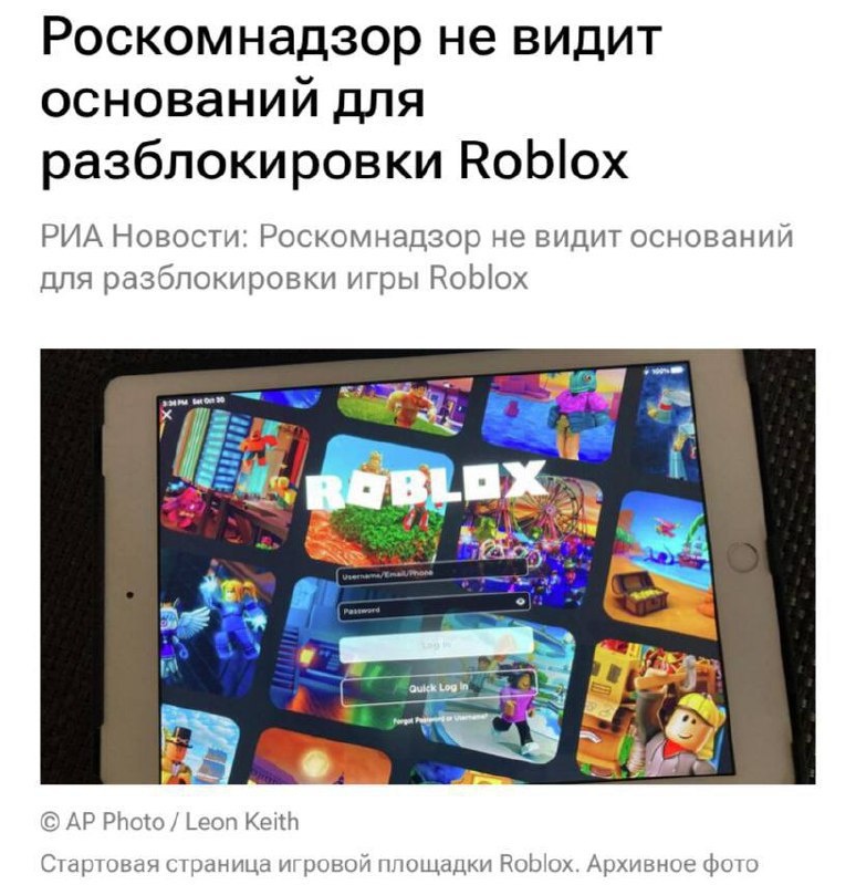 ⚡️Roblox не разблокируют в РКН сказали, что оснований для снятия блокировки нет