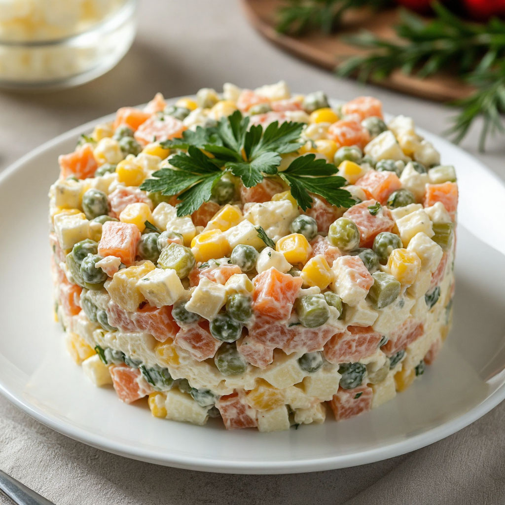 Классический оливье — неизменный герой праздничных столов. Но что, если слегка переосмыслить рецепт и заменить привычную колбасу на благородную говядину? Результат превзойдёт ожидания: мясо придаёт салату глубину вкуса и изысканную текстуру, сохраняя при этом узнаваемый «новогодний» характер блюда. Почему говядина? Насыщенный мясной вкус без «колбасной» ноты. Сочность и плотность кусочков. Визуальная привлекательность: розовые грани мяса красиво контрастируют с овощами. Ингредиенты (на 4–6 порций) отварная говядина — 300 г; картофель отварной — 4 шт.; морковь отварная — 2 шт.; огурцы солёные — 3–4 шт.; горошек консервированный — 200 г; яйца отварные — 4 шт.; майонез — 150 г; соль, чёрный перец — по вкусу; зелень для украшения (укроп/петрушка). Шаг за шагом Подготовка мяса. Отварите говядину целым куском в подсолённой воде с лавровым листом и перцем горошком (примерно 1,5 часа). Остудите в бульоне — так мясо останется сочным. Нарежьте кубиками 1×1 см. Овощи и яйца. Картофель, морк
