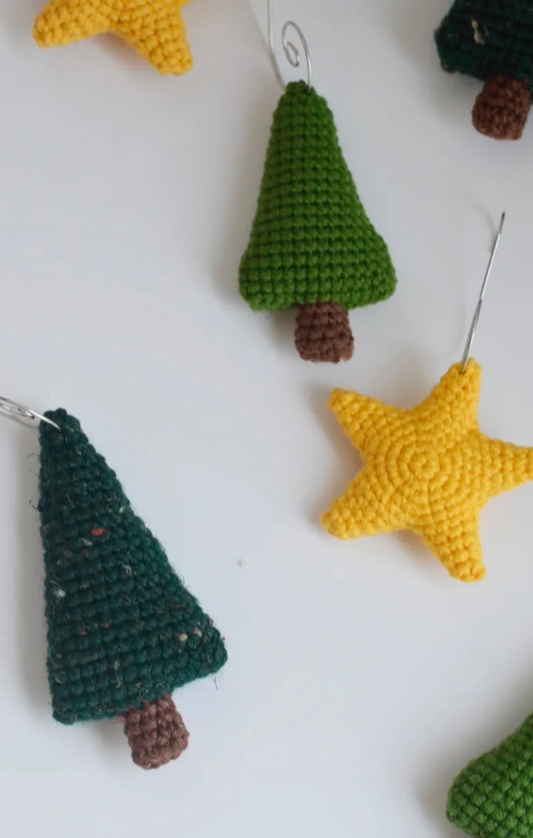 Еще один мк на елочку ,можно прицепить карабин,привязать веревочку или специальные крепления для елочных украшений 🎄 Можно украсить бусинами,бисером,связать из люрекса,ярн арт крисмас,в общем полёт фантазии) Я брала ализе коттон Голд и ярн арт твид. Вп-воздушная петля Сбн-столбик без накида Пр-прибавка из сбн Уб-убавка из сбн Вязание начинаем коричневой пряжей: 1) 5вп во вторую петлю от крючка 3сбн, пр по другой стороне цепочки 3сбн (8) 2-5) 8сбн (4 ряда) В конце 5 ряда можно провязать еще один сбн(если было смещение) смена нити на цвет вашей елочки,коричневую нить не обрезаем: 6) 6вп со второй петли от крючка 5сбн,смена на коричневую 4сбн,смена на зеленый 6вп со второй петли от крючка 5сбн,смена на коричневый 4сбн (28)смена на зеленый,коричневую нить можно закрепить и отрезать 7) 5сбн по оставшимся полу петлям цепочки,9сбн,5сбн по оставшимся полупетлям второй цепочки,9сбн 8-10) 28сбн (3ряда) В конце 10 ряда провязываем еще 5-6 сбн чтобы начало ряда было сбоку: 11) (уб+12сбн)х2 (2