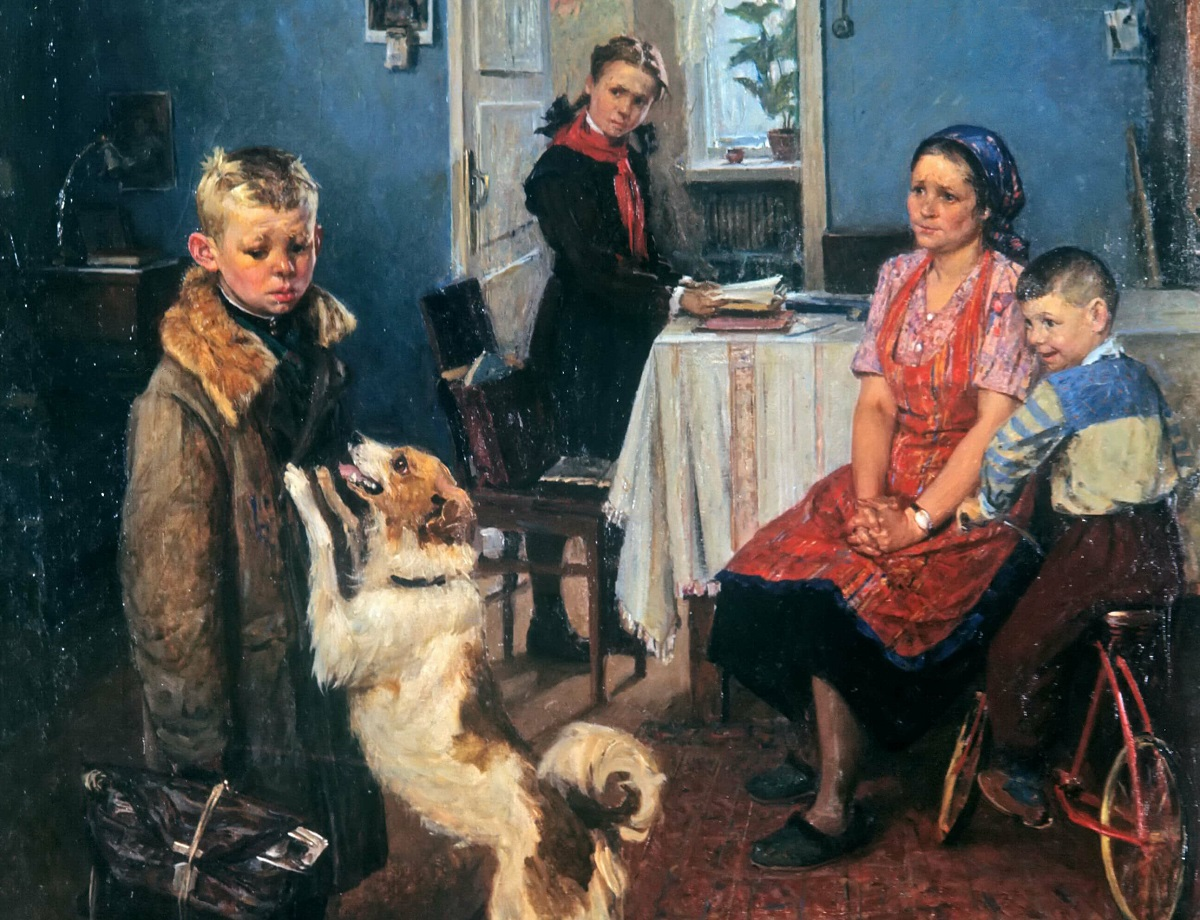 Интересно, а назвал бы я свой очерк "Фёдор Решетников", многих бы заинтересовало это имя? Что мы вообще знаем об авторе этой, одной из самых популярных картин Советского Союза? Кстати, самой популярной картиной, была тоже его работа "Прибыл на каникулы", написанная в 1948 году. Её репродукций в виде: открыток, подвесов для отрывных календарей и просто репродукций, - было продано свыше 15 миллионов экземпляров! Вот бы мне бы процентов десять от такого тиража...