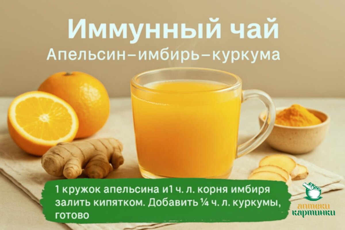 ✨Апельсин–имбирь–куркума: маленькая кружка иммунитета Когда хочется согреться, взбодриться и чуть-чуть поддержать иммунитет — этот горячий напиток работает удивительно хорошо ☕️💛 Что нужно: 🔥 стакан горячей воды 🍊 2–3 ломтика апельсина 🫚 1 ч. л. тёртого имбиря ✨ щепотка куркумы 🍯 мёд — по желанию (только в тёплый чай!) Почему полезно: ✅ Апельсин — витамин C для бодрости. ✅ Имбирь согревает и придаёт тонус. ✅ Куркума — источник куркумина, сильного антиоксиданта. ✅ Комбо даёт мягкий «разгон» иммунитету и приятное тепло внутри. Как приготовить: ➖Залить всё горячей водой, настоять 5 минут — и можно наслаждаться. А Вы что добавляете в свои зимние чаи? #иммунитет #зожрецепт #имбирныйчай #здоровьекаждыйдень #искусствоздоровья #аптекакартинки