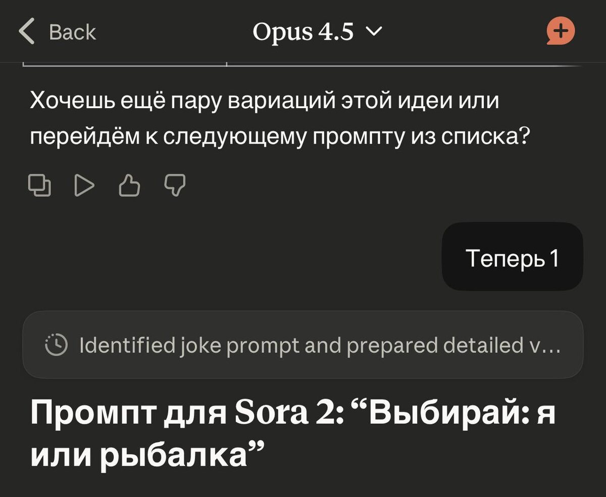 Сегодня узнал, что Sora 2 не простой исходник генерирует, а прям делает нарезку готового видео Бывает. Во всем разбираться сразу не возможно. Тем не менее это не помешало мне создать Skills для Claude, который теперь по простой идее пишет промпты, которые дают такой результат. (Как и nano banana) Ребятам в фабрике показывал на практике как довожу ИИ до того, что просто с ним общаясь, я получаю результаты круче, чем продуманные промпты. Пример промпта для генерации рыбака: Format & Style: Cinematic comedy with dramatic undertones, film grain, Wes Anderson meets Russian reality. Absurdist humor played completely straight. Platform: TikTok / Instagram Reels Duration: 10 seconds Aspect: 9:16 vertical HOOK (0-2s): Wide shot of endless frozen lake. Tiny figure sitting alone on ice. Immediately raises question: "What is happening here?" SCENE: Vast frozen lake in Russian winter. Grey overcast sky, flat white ice stretching to horizon. A middle-aged man (45-50), weathered face with stub