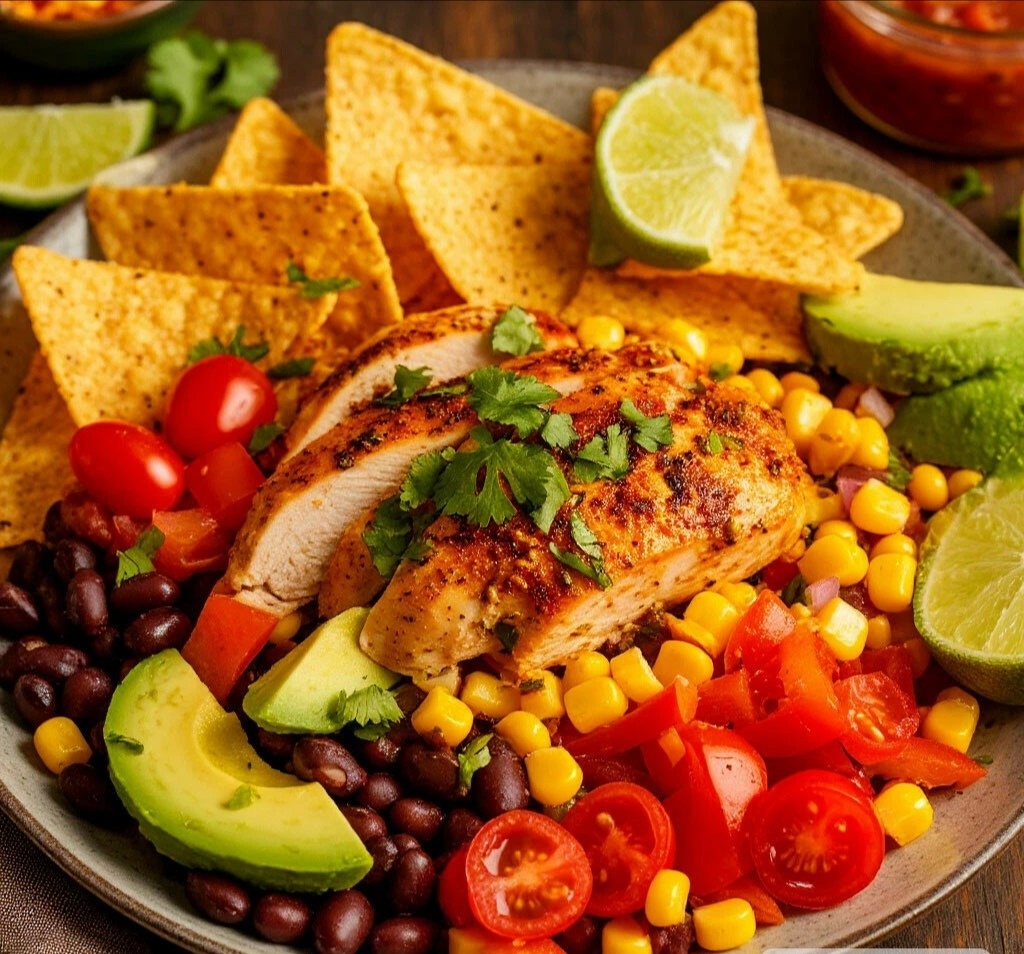 САЛАТ — «ФИЕСТА С ХРУСТОМ»: МЕКСИКАНСКИЙ САЛАТ С ЧИПОТЛЕ И АВОКАДО Мяу, мои пушичные искатели приключений! 😺🌶️ Давайте начнём нашу новогоднюю подготовку со взрыва красок и вкусов! Этот салат — как карнавал в Мексике: яркий, сочный, с дымной ноткой чипотле и приятным хрустом. Он станет звездой любого праздничного стола и точно не останется незамеченным! 🥗🇲🇽✨ «ФИЕСТА С ХРУСТОМ»: МЕКСИКАНСКИЙ САЛАТ С ЧИПОТЛЕ И АВОКАДО ИНГРЕДИЕНТЫ: 🧾 ·Куриное филе (бедро): 300 г ·Помидоры черри: 200 г ·Перец болгарский (красный и жёлтый): по 1 шт. ·Лук красный: 1/2 шт. ·Фасоль консервированная чёрная: 1 банка (240 г нетто) ·Кукуруза консервированная: 1 банка (240 г нетто) ·Авокадо: 1 шт. ·Чипсы из тортильи: для подачи ·Кинза: небольшой пучок ·Сок лайма: 1 шт. ·Масло растительное: 1 ст.л. ·Зира (кумин) молотая: 1/2 ч.л. Для соуса: ·Йогурт натуральный: 150 мл ·Сметана: 50 мл ·Паста чипотле в адобо: 1-2 ч.л. ·Сок лайма: 1 шт. ·Чеснок: 1 зубчик ·Зира молотая: 1/2 ч.л. ·Соль, перец чёрный свежемолоты