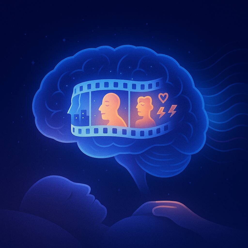 Мозг как будто спрашивает: «Это оставить или удалить?» Поэтому утром тревога часто становится слабее — мозг переработал её ночью. ⸻ 🎬 2. Создаёт полноценные фильмы из ничего Сновидения — это монтаж из случайных воспоминаний, эмоций и образов.