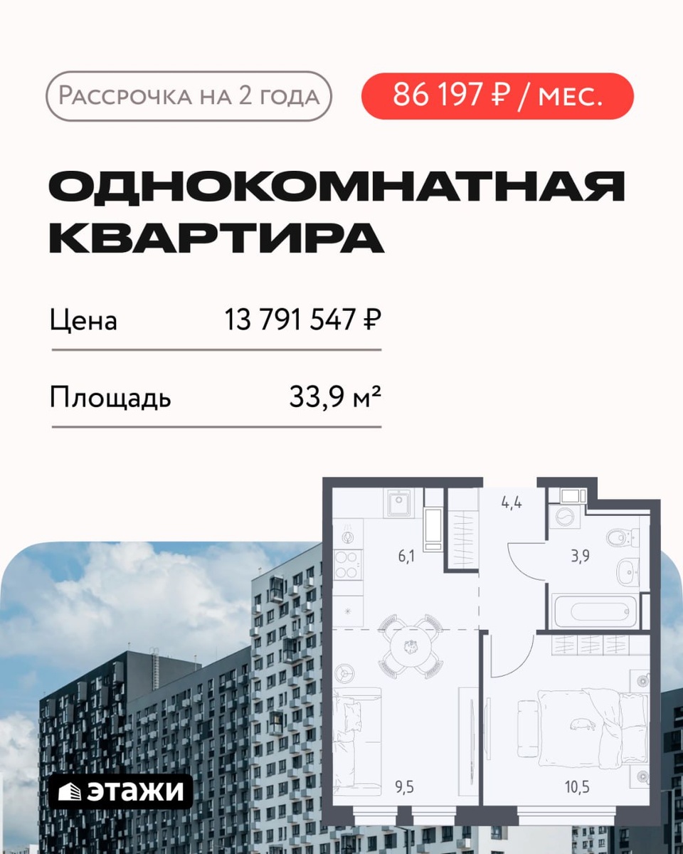 ▶️Рассрочка на два года О проекте: ⭕️Мытищи, МО ⭕️Пешеходный бульвар с центральной площадью, всесезонные детские площадки ⭕️Пироговский лесопарк — вокруг комплекса ⭕️«Лосиный остров» и Пироговское водохранилище — 15 мин на авто ⭕️Рядом ТРЦ, супермаркеты, поликлиники, спортклубы, детские центры ⭕️Входные группы на уровне земли, колясочные и велокомнаты ⭕️3 детсада, 2 школы, ФОК, коммерция на первых этажах Условия покупки: ⭕️Рассрочка на 2 года ⭕️ПВ 15% ⭕️Наценка 25% ⭕️Ежемесячный платеж 15% (Условия зависят от ЖК и корпуса) Расчет: ⭕️Корпус сдан ⭕️Стоимость с наценкой: 13 791 547 ₽ ⭕️Ежемесячный платеж на 2 года: 86 197 ₽ ⭕️Через 2 года возможен переход на ипотеку. #Мытищи #Мытищи_Парк #Самолет