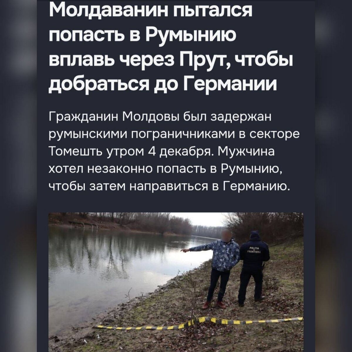 Ранее мужчина был задержан после аналогичной попытки в секторе Хуши. Он был внесен в базу данных граждан третьих стран с отказом во въезде и проживании в ЕС. @eNewsmd.online 👈 Подписывайтесь на наш канал