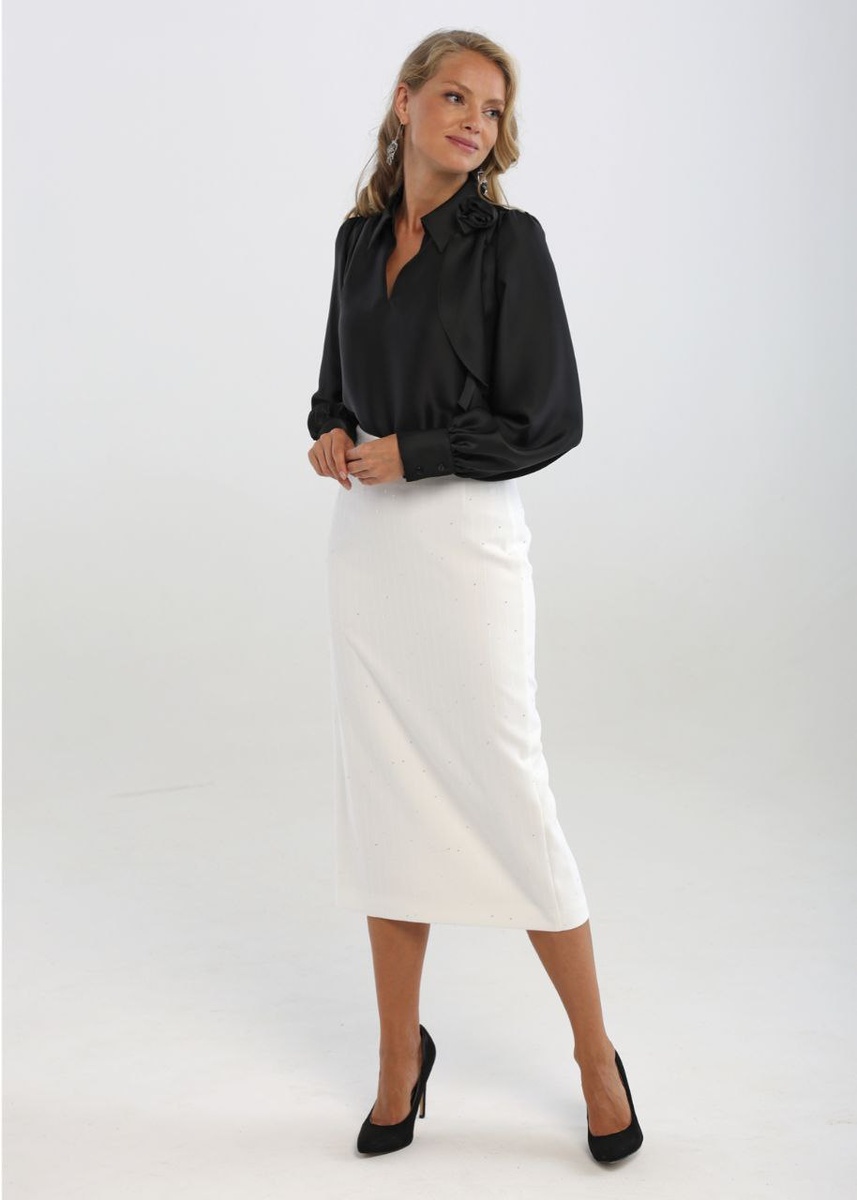 Эффектная чёрная блуза, шелковистая ткань, праздничное настроение гарантировано. Размерная сетка 42-54, количество очень ограничено.