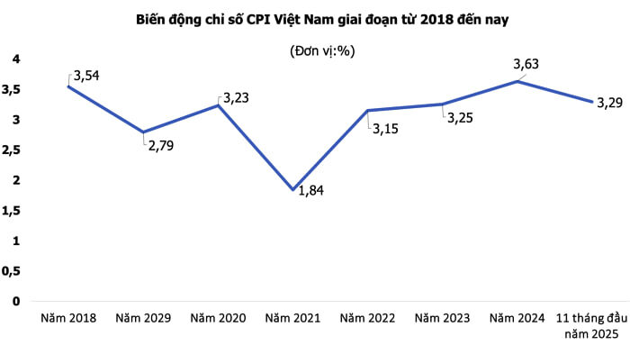 Колебания индекса потребительских цен во Вьетнаме с 2018 года по настоящее время
