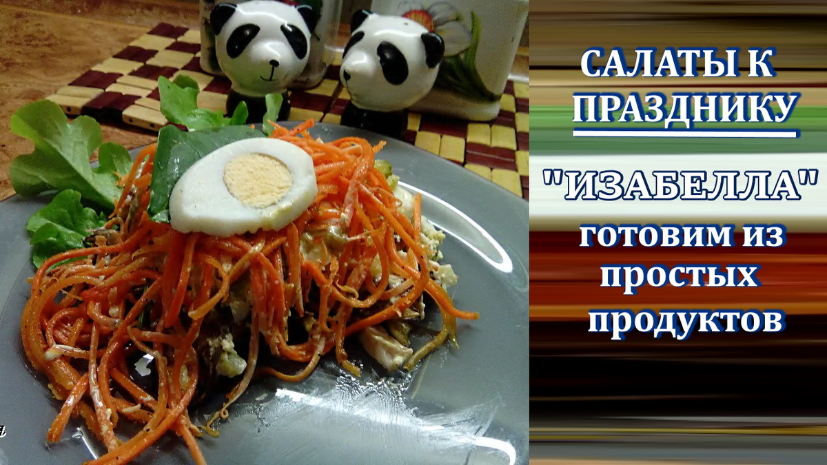 Любите сытные и ароматные салаты, которые готовятся быстро и просто? Салат «Изабелла» с копчёной курицей, корейской морковью и грибами — находка для начинающих хозяек и опытных кулинаров! Быстрый и вкусный салат «Изабелла» из доступных продуктов: копчёная курица, грибы, корейская морковь. Готовится за 20 минут — идеально для гостей или ужина! Весь секрет вкусных салатов из простых продуктов заключается в гармоничном подборе их сочетания между собой. Здравствуйте. С вами Светлана и канал Любимая Усадьба . Салат ИЗАБЕЛЛА с копченой курицей Вот так выглядит он в разрезе Давайте приступим к приготовлению. Состав продуктов и их количество Как подготовить продукты Грибы и лук должны быть нарезаны и обжарены на растительном масле. Вы можете обжарить их вместе и в этом случае при сборке салата это будет один слой-обжареные грибы с луком А можно обжарить их отдельно и тогда при сборке салата эти продукты будут выкладываться отдельными слоями-слой грибов и следом слой лука. Яйца отварить