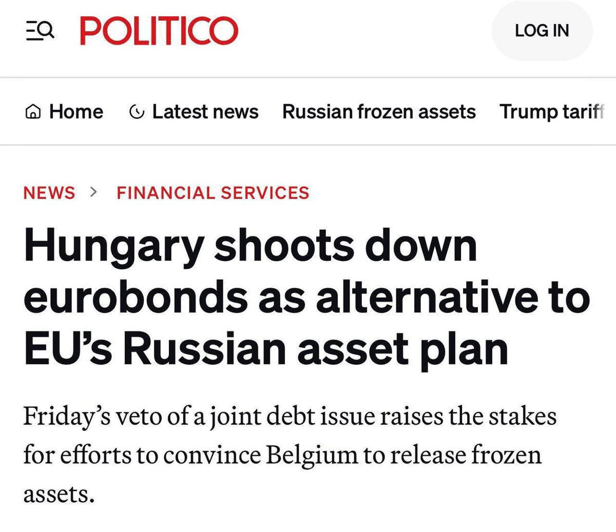 Венгрия заблокировала план ЕС по €90-миллиардному займу для Украины, — Politico. Будапешт выступил против выпуска общеевропейских облигаций для финансирования Киева, лишив ЕС резервного инструмента на случай, если не удастся использовать замороженные российские активы.