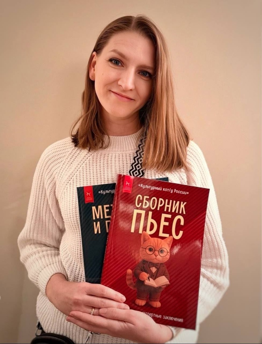 Наш земляничный автор Нюта Яковлева приняла участие во Всероссийском конкурсе детских и подростковых пьес «Культурный кот/д России», награждение финалистов которого состоялось в июне этого года на Красной площади🎉 В проекте приняли участие 114 авторов, 21 пьеса вошла в лонг-лист, 13 пьес получили положительную экспертизу от научных сотрудников Института Воспитания | ФГБНУ ИИДСВ и рекомендованы к дальнейшему участию в проекте. Проделана большая работа. И вот сборник пьес готов!📚 Передаём слово Нюте: «Я счастлива, что мой «Сарайчик воспоминаний» оказался в числе финалистов и вошёл в сборник. Ведь это пьеса о том, что наши воспоминания о счастливых моментах, о детстве, наша память об ушедших близких – невероятно важны. А еще о том, что нельзя забывать о тех, кто рядом с нами. О том, что храня в сердцах воспоминания, мы должны уметь строить настоящее. Здесь и сейчас. И, конечно, она о любви и ценности семьи. Записываясь в проект я не испытывала больших надежд, мне просто хотелось попроб
