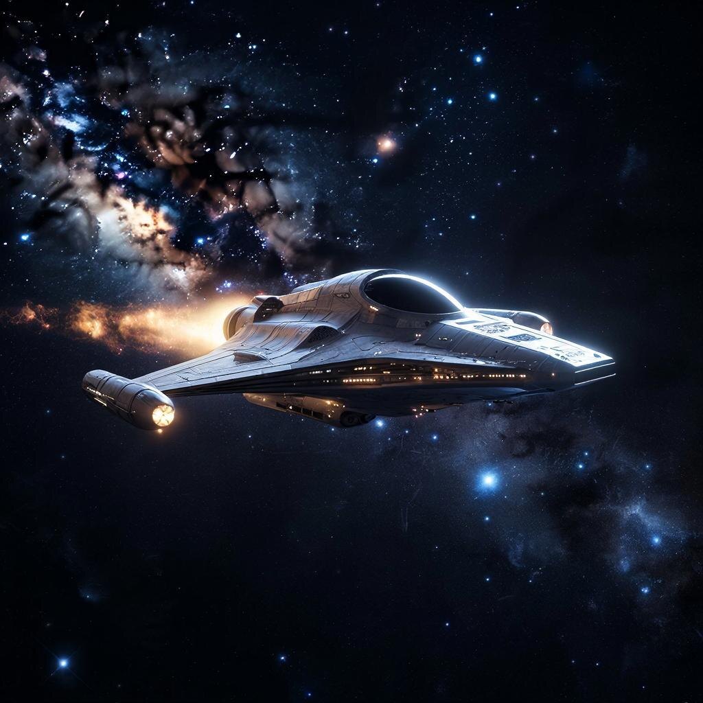 Глава первая: Начало пути Космос манил меня давно своими тайнами и загадками. Я мечтал отправиться туда, где никто ещё не бывал, увидеть миры, скрытые от глаз человечества. Однажды ночью, сидя перед телескопом, я заметил странное свечение на горизонте. Оно приближалось быстро, оставляя за собой светящийся след. Это было необычное явление, которое привлекло моё внимание. Решив выяснить, что же там такое, я собрал необходимые вещи и отправился навстречу неизвестному. Вскоре я оказался перед огромным звездолётом, стоящим посреди поля. Его поверхность переливалась всеми цветами радуги, словно живая материя. Войдя внутрь, я увидел приборную панель, покрытую незнакомыми символами. Но интуиция подсказывала мне, куда идти дальше. После короткого изучения панели управления я понял, как управлять кораблём. Запустив двигатели, я почувствовал, как корабль поднимается вверх, отрываясь от земли. Мы отправились в небывалое путешествие сквозь пространство и время... Глава вторая: Встреча с при