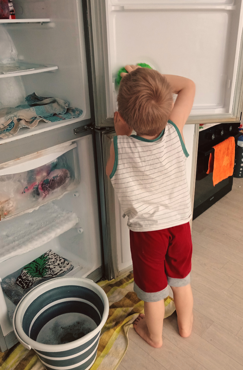 С приходом первых декабрьских выходных настало время заняться уборкой на кухне. Хотя, если честно, это скорее подготовка к переменам, чем настоящая уборка. В середине ноября мы продали нашу старую, но любимую кухню и заказали новую. Нам пообещали установить её до конца года, и я очень надеюсь, что это произойдет. В противном случае в нашем доме не будет никакого праздничного настроения. Кухня-гостиная — это сердце нашей семьи. Во-первых, потому что именно там мы с мужем спим; во-вторых, это самая большая комната в нашей квартире; и в-третьих, хаос от коробок и отсутствие места очень сильно портят настроение. С холодильником у нас какая-то беда. В углу стал наростать огромный кусок льда, а в верхнем ящике морозилки появился большой оледеневший слой снега. Такой большой, что ящик не открывается. 4 декабря мы написали письма Деду Морозу и сложили в морозильную камеру. Я не ожидала, что этот процесс будет таким милым и трогательным. Детки старались изо всех сил, искренне отвечая на воп