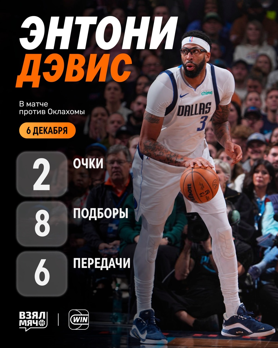 😰 Энтони Дэвис провёл худший матч в карьере Центровой не мог набрать очки 22 минуты. В итоге у него 2 очка, 11% с игры, 8 подборов, 6 передач, а также 1 блок за 24 минуты на площадке. Мыслями уже в другой команде? 🏀 ПОДПИШИСЬ — ЗДЕСЬ ЖИВЁТ БАСКЕТБОЛ!