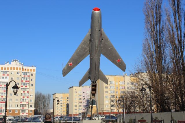 Что у нас есть: есть только МиГ между прошлым и будущем Самолёт-стела был установлен напротив Калининградского военно-авиационного училища в 1979 году. Находится на улице Борзова в Калининграде. МиГ-19 – советский одноместный реактивный истребитель второго поколения, разработанный ОКБ Микояна и Гуревича в начале 1950-х годов.