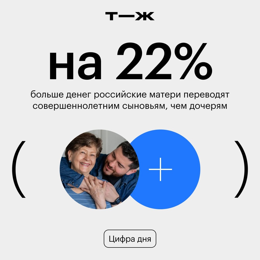Средняя сумма одного перевода — 6 321 ₽. У несовершеннолетних детей все наоборот: девочкам переводят на 32% чаще и на 33% больше — в среднем 1 717 ₽. А вот сколько денег дети переводят мамам, мы рассказали в статье: https://t-j.ru/tg/korzinochka/