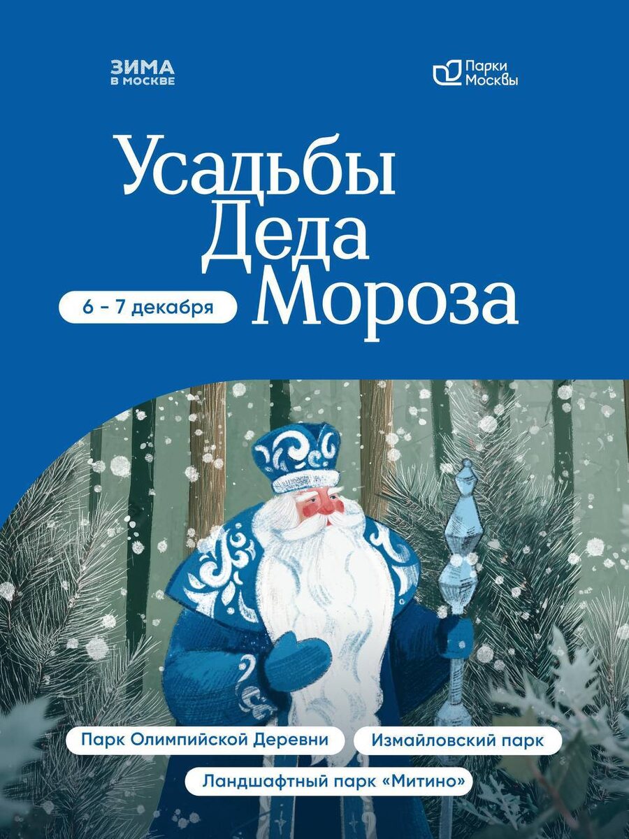 Филиалы Усадьбы Деда Мороза в Парках Москвы приглашают в увлекательное путешествие! 🎄 Мы подготовили интересную программу: пойте новогодние песни, танцуйте и создавайте чудеса своими руками. Программа выходных — на картинке. Где находятся филиалы Усадьбы Деда Мороза: 📍 Парк Олимпийской Деревни. Билеты на мастер-классы 📍 Измайловский парк. Билеты на мастер-классы 📍 Ландшафтный парк «Митино». Билеты на мастер-классы Активности на территории внутреннего двора — бесплатные. Приходите верить в волшебство всей семьёй! @Together_with_kids Пост носит информационный характер Поддержать канал голосом ЗДЕСЬ