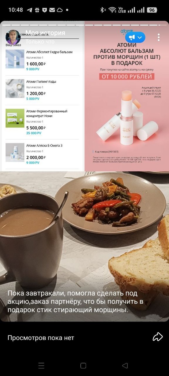 Пока завтракали, помогла сделать под акцию,заказ партнёру, что бы получить в подарок стик стирающий морщины.
