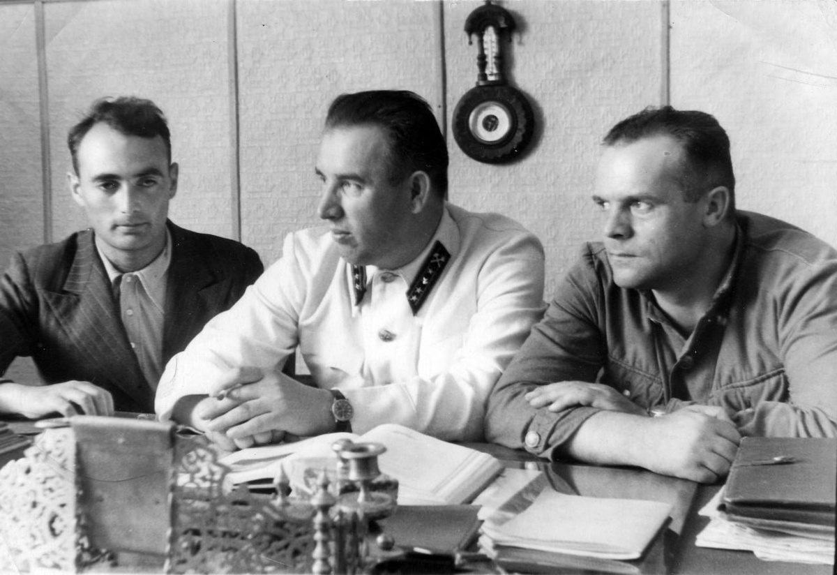 Начальник штольни треста "Киргизуголь" в белом летнем кителе с петлицами среднего инженерно-технического состава соответствующие горному инженеру-геологу 1 ранга образца 1947 года. Заметка из газеты - Правда, 1947, № 306 (10697). Источник: отсканированная фотография из личной коллекции. #фото #горняки