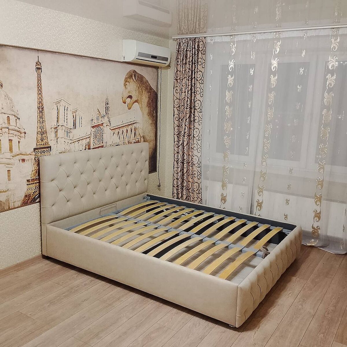 Кровать «Риана» в красивом бежевом цвете прибыла в свой дом и идеально вписалась в интерьер комнаты,подчеркнув ее изысканность и нежность