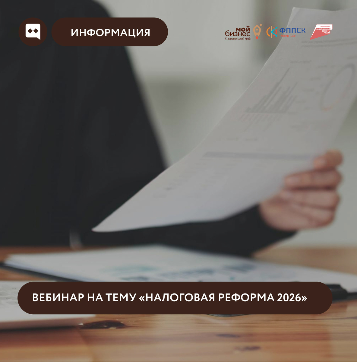 УФНС России по Ставропольскому краю приглашает налогоплательщиков принять участие в вебинаре на тему «Налоговая реформа 2026». Вебинар будет проходить 08 декабря с 13:00 до 15:30. Спикерами выступят сотрудники структурных подразделений Управления. Будут рассмотрены вопросы: Электронного документооборота. НДС при упрощённой системе налогообложения в 2026 году. Дробление бизнеса. Авто УСН. Вопросы применения ККТ. Налог на прибыль. Туристический налог. НДФЛ; Налог на имущество организаций, налог на имущество физических лиц, земельный налог. Практика применения ЕНС, изменения с 2026 года. www.nalog.gov.ru