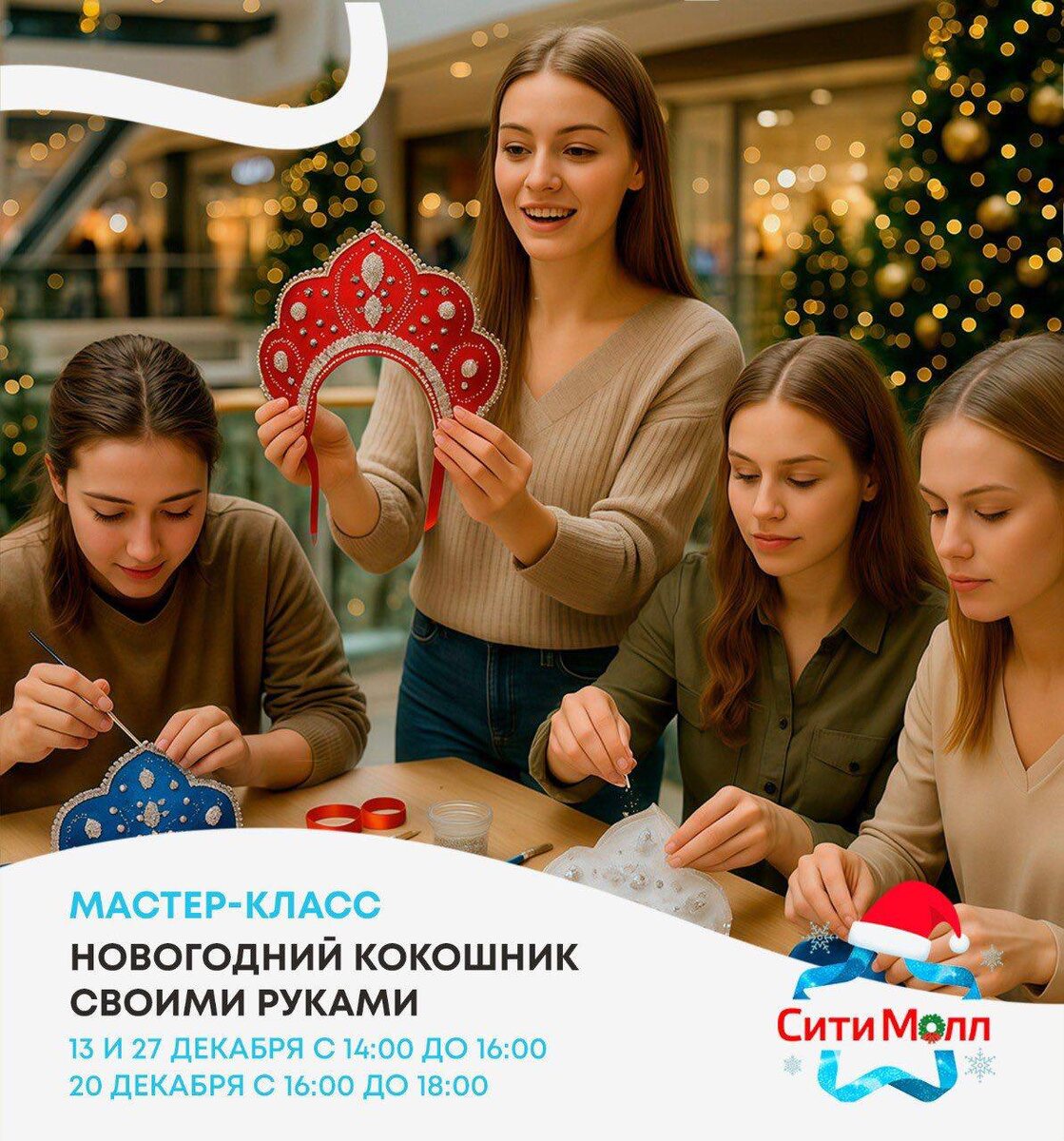 Мастер-классы «Новогодний кокошник своими руками» ✔ Бесплатные мастер-классы ✔ Новогодний кокошник своими руками ✔ Материалы предоставляются ✔ Подходит детям и взрослым ✔ Формат свободного участия 📅 Когда: #13_декабря (14:00–16:00), #20_декабря (16:00–18:00), #27_декабря (14:00–16:00) ⛳ Где: ТРЦ «Сити Молл», главный атриум, 1 этаж 💳 Вход свободный 👉 Афиша Хабаровска. Куда сходить, экскурсии