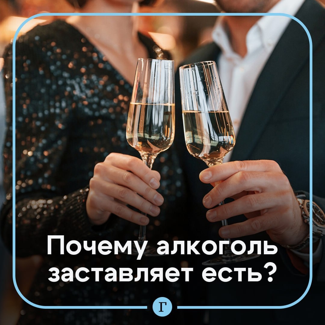 🍜 Почему после алкоголя так тянет жрать Врач-терапевт объясняет, что шампанское и другие напитки — это почти одни пустые калории: никаких полезных веществ, только сахар и спирт. В одном бокале сладкого шампанского — до 125 ккал, в полусухом — около 78, в самом сухом — примерно 60. Алкоголь заметно раздувает аппетит: аперитив перед едой в среднем увеличивает количество съеденного на четверть. В этом участвуют: • нейроны гипоталамуса, усиливающие чувство голода, • слизистая желудка, которая раздражается спиртным и «просит» ещё еды. Есть и гендерная разница. Мужчинам лучше сначала поесть, а потом пить — так меньше шансов объесться. У женщин часто наоборот: если они начинают пить во время еды, то съедают больше, потому что алкоголь обостряет обоняние, еда пахнет сильнее — и рука сама тянется за очередной закуской. https://dzen.ru/id/68263e85c49d2f29a488c05b