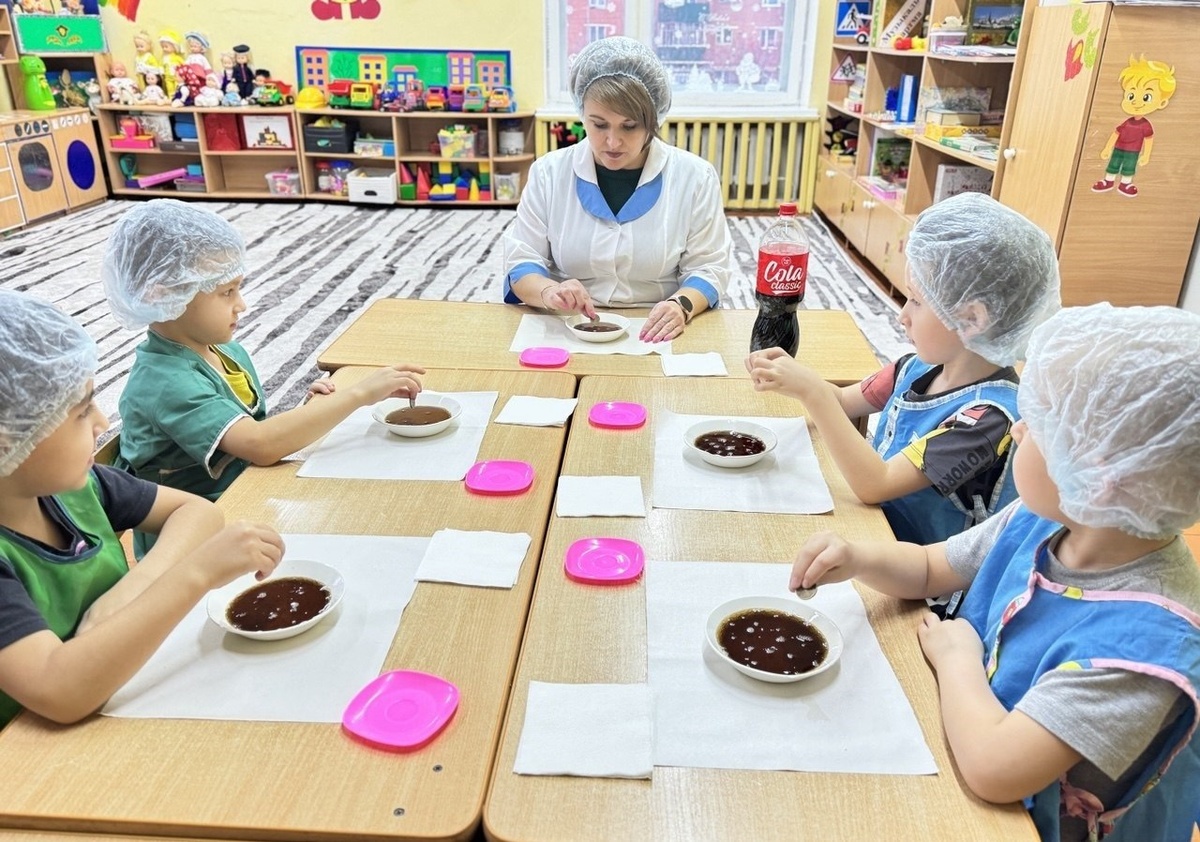 Воспитанники старшей группы детского сада №4 «Экият» в Мамадыше в рамках «Нескучной лаборатории» провели серию опытов, чтобы выяснить, полезна или вредна «Кока-кола». Как сообщает официальная группа учреждения во ВКонтакте, дети вместе с воспитателем экспериментально проверяли влияние популярного газированного напитка. В одном из опытов они смешали «Кока-колу» с мятными конфетами, что вызвало бурную реакцию. По мнению воспитателей, это наглядно показывает, что напиток оказывает химическое воздействие, схожее с реакцией «взрыва», на зубы и желудок человека. Второй эксперимент с металлическими монетами продемонстрировал способность напитка легко удалять ржавчину и грязь, что, по аналогии, может указывать на разъедающее действие на слизистую желудка. По итогам лабораторных наблюдений юные исследователи сделали вывод, что «Кока-кола» — это сильно газированный напиток, содержащий вещества, которые могут негативно влиять на зубы и желудок. ✅ Подписаться l Мы в Max