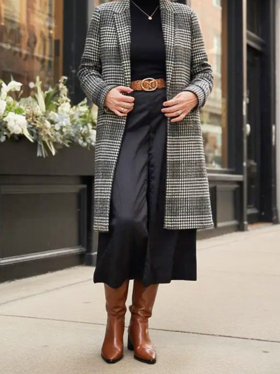 Важный момент - выбирайте дышащие ткани, потому что ноги должны быть в тепле, но не перегреваться. У меня юбка из тонкой шерсти с добавлением вискозы - в ней комфортно и не жарко даже в помещении. Сочетаю её с высокими сапогами на низком каблуке (про обувь ещё поговорим!), водолазкой и длинным кардиганом. Выглядит стильно, элегантно, а главное - ноги полностью скрыты, и я чувствую себя уверенно.