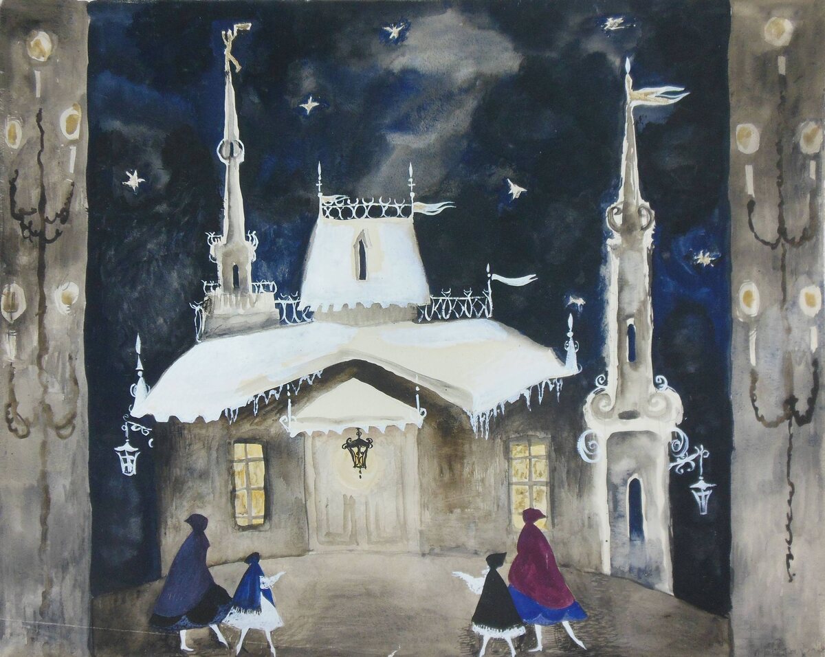 Приснилось, что пошла на «Щелкунчика» в декабре в Большой, как в детстве. Фантастический жанр сновидений всегда уважала🌲 А пока мечты остаются мечтами, полюбуемся эскизами декораций к балету авторства Ирины Александровны Старженецкой 1969