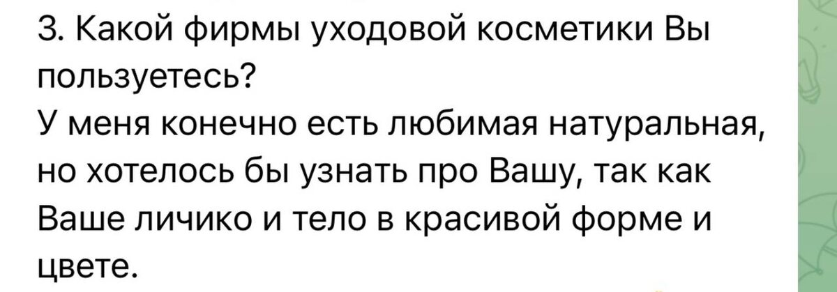 Какой я пользуюсь косметикой Первое и главное что я увидела с фейсформингом, что косметика вообще не имеет значение. Мое состояние кожи не является результатом косметики. Хорошая упругая кожа - результат работы систем и структур тела, а это обеспечивает мне фейсформинг. Я не против косметики, пользуюсь, но мой уход - это мицелярка, тоник и лёгкий крем. Очень редко (раз в 2-4 мес) без какого- либо плана просто по желанию могу сделать маску или скраб. Пилингами не пользуюсь уже больше шести лет, хотя раньше делала постоянно у косметолога в уверенности что это дает хороший свежий цвет лица - это не так! Хотите свежесть и упругость кожи лица - обеспечьте ей хорошее питание, работа по алгоритму фейсформинга самый быстрый и приятный способ получения лучшего качества кожи. Я часто ничего вообще не наношу как сегодня - фото с утра. 👇🏻