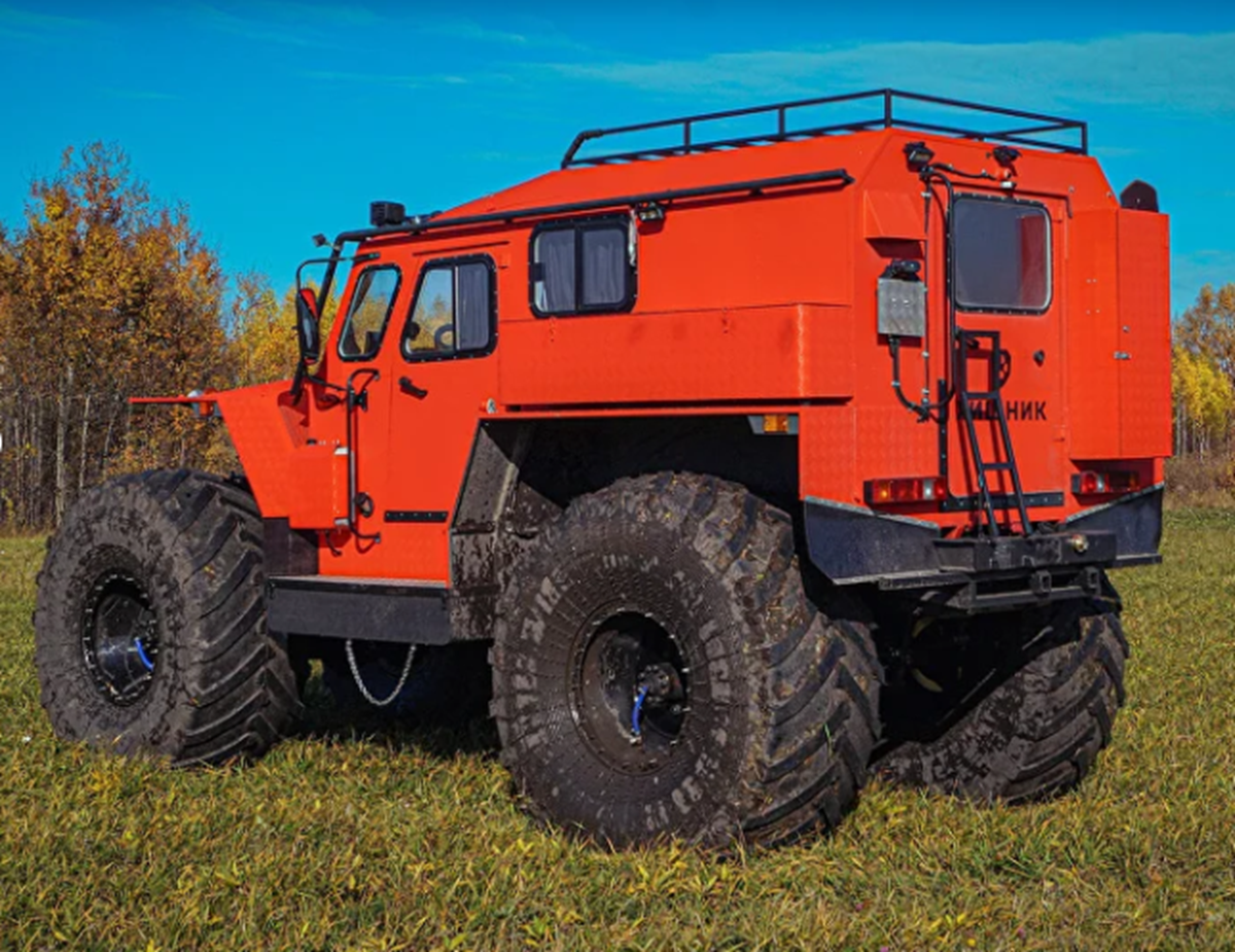 Вездеход ХИЩНИК 29014А удивляет сочетанием дизельных моторов и мостов ГАЗ-66. Модель создана для сложнейших условий. Внутри — теплый салон и трансформируемые спальные места. Подвеска и шины рассчитаны на болота и снег. Оборудование впечатляет даже опытных водителей. На российском рынке появился снегоболотоход ХИЩНИК 29014А, который сразу привлек внимание любителей экстремального бездорожья. Эта машина создана для тех, кто не боится ни болота, ни глубокого снега. В основе конструкции — шины сверхнизкого давления, диаметр которых варьируется от 1300 до 1780 мм. Благодаря этому вездеход может уверенно передвигаться там, где застревают обычные автомобили. В комплектации предусмотрены люк, централизованная подкачка колес (если выбраны мосты ГАЗ-66), а также блокировки в мостах и дисковые тормоза на колесах. За трансмиссию отвечает механическая коробка передач от Toyota, раздаточная коробка позаимствована на ГАЗ-3308 «Садко». Подвеска по умолчанию пружинная, но по желанию покупателя может