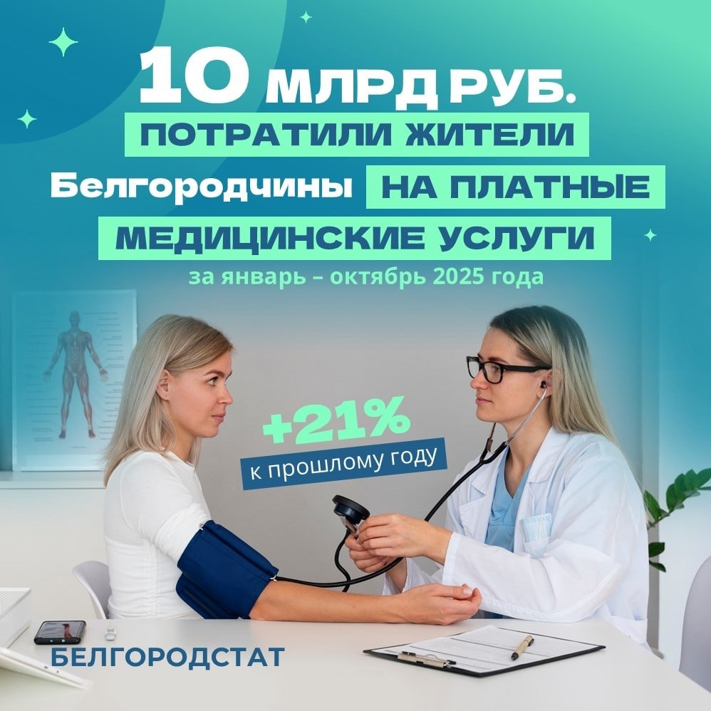 Белгородцы потратили 10 млрд рублей на платные медицинские услуги за 10 месяцев 2025 года В Белгородстате изучили траты белгородцев на платные медицинские услуги за период с января по октябрь 2025 года. В перечень платных медуслуг специалисты статистики отнесли помощь, которая оказывается пациенту вне программы обязательного медицинского страхования. Это, например, лечение, консультация или диагностика, не входящие в перечень ОМС. За год в Белгородской области на 17% повысились траты жителей на лекарственные препараты. В среднем жители региона тратят на медикаменты до 2 470 рублей. Большую часть покупателей лекарств (54%) составляют люди в возрасте старше 45 лет. На них приходится до 66% расходов. Подписаться на 🗞🗞 | Поддержать бустом