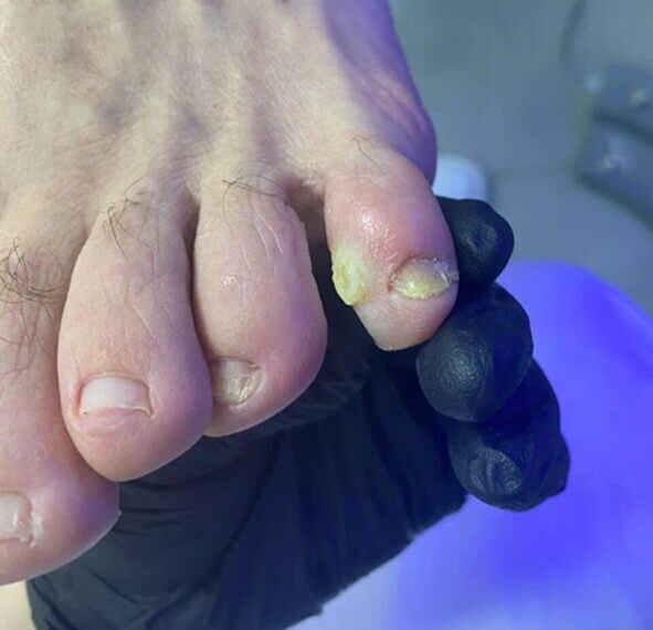 Межпальцевая мозоль — это распространенная проблема с кожей стоп, которая возникает на ногах между пальцами. Это образование представляет собой утолщение ороговевшего эпителия в межпальцевом пространстве, вызванное длительным давлением или трением. Межпальцевая мозоль на ноге часто появляется у тех, кто много времени проводит на ногах или носит неудобную обувь. Она отличается от обычных мозолей на пятках или пальцах тем, что локализуется именно между пальцами, например, между большим и вторым пальцами. Межпальцевый мозоль убрать не всегда просто, но с правильным подходом это возможно. Что она из себя представляет Межпальцевая мозоль на ноге — это участок кожи, который становится грубым и утолщенным из-за постоянного давления. Она может быть двух типов: мягкая и твердая. Внешне межпальцевый мозоль может иметь красноватый оттенок, трещины, если его не лечить. Изнутри она представляет собой слой ороговевших клеток, который организм формирует для защиты кожи от дальнейшего повреждения. Пр