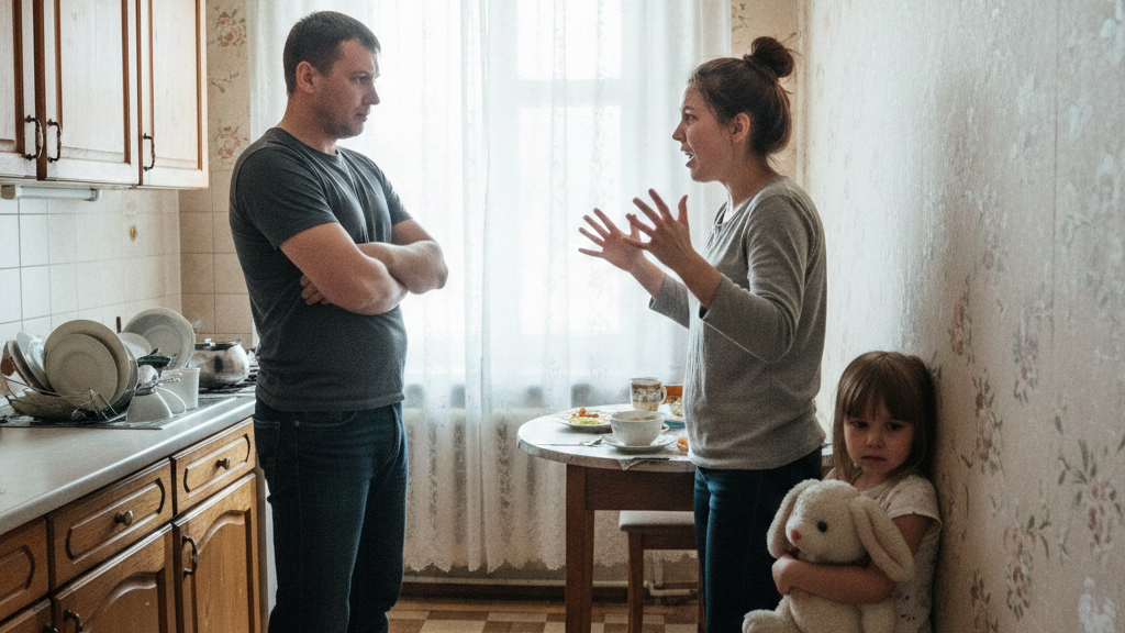 Они сели за стол, но радость быстро растаяла. Между папой и мамой повисло напряжение, как перед грозой. Он что-то сказал про алименты, она — про его «новую жизнь». Голоса всё крепчали, становились резкими, злые слова сыпались одно за другим.