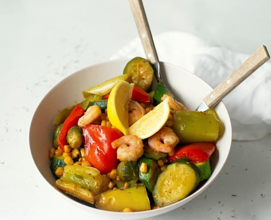 Рецепты на Новый год должны быть какие? Правильно — вкусные и красивые. Как раз такие, которые мы собрали в нашей подборке. Там и горячее, и закуски, и салаты. И все блюда с продуктами от “6 соток”. А в конце статьи мы расскажем, какие необычные новогодние традиции существуют в других странах. Не переключайтесь. Соте из креветок с овощами и кукурузой Это полезно, это низкокалорийно, это вкусно, это красиво! В общем, идеально. Что понадобится: Креветки — 500 г. Цукини — 2 шт. Перец болгарский — 2 шт. Брюссельская капуста — 200 г. Кукуруза консервированная «6 соток» — 1 банка Чеснок — 3 зуб. Оливковое масло — для жарки Лимон — для подачи Соевый соус — 3 ст. л. Соль, прованские травы — по вкусу Как готовить: В разогретой сковороде на оливковом масле обжариваем нарезанный слайсами чеснок. Добавляем креветки и обжариваем их пару минут до готовности. Перекладываем креветки в отдельную миску. В эту же сковороду выкладываем крупно нарезанные овощи и кукурузу. Добавляем соль, прованские травы
