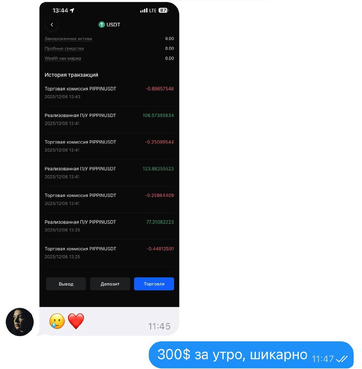 активно торгую. Для этого у нас есть обучающая база, более 100 уроков. Как итог у Наташи +300$ за сегодня😍 Но она ещё в шорте по той же монете, думаю до 500$ добьёт😬 #кейсы Торгуем на 📈BINGX