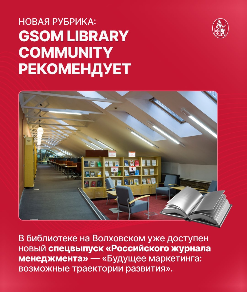 📕 В нашем канале стартует новая рубрика — «GSOM Library Community рекомендует»! Каждую неделю мы будем делиться с вами самыми интересными новостями Сообщества библиотеки ВШМ СПбГУ. А начнем с актуального сегодня! 📌 В библиотеке ВШМ СПбГУ на Волховском уже доступен новый спецвыпуск «Российского журнала менеджмента» (РЖМ) — «Будущее маркетинга: возможные траектории развития». 🔥 РЖМ входит в топ самых цитируемых журналов России о маркетинге. А в этом выпуске — концентрация знаний для стратегов: ➡ Подходы к управлению брендом и взаимодействию с клиентами в российских компаниях ➡ Анализ Маркетинговых данных в компании, централизованный и децентрализованный подходы ✔ Рекомендуем статью «Подходы к управлению брендом и взаимодействию с клиентами в российских компаниях» Читать статью: Смирнова, М. М. Подходы к управлению брендом и взаимодействию с клиентами в российских компаниях / М. М. Смирнова, И. И. Староверова // Российский журнал менеджмента. – 2025. Эта и другие полезные статьи д