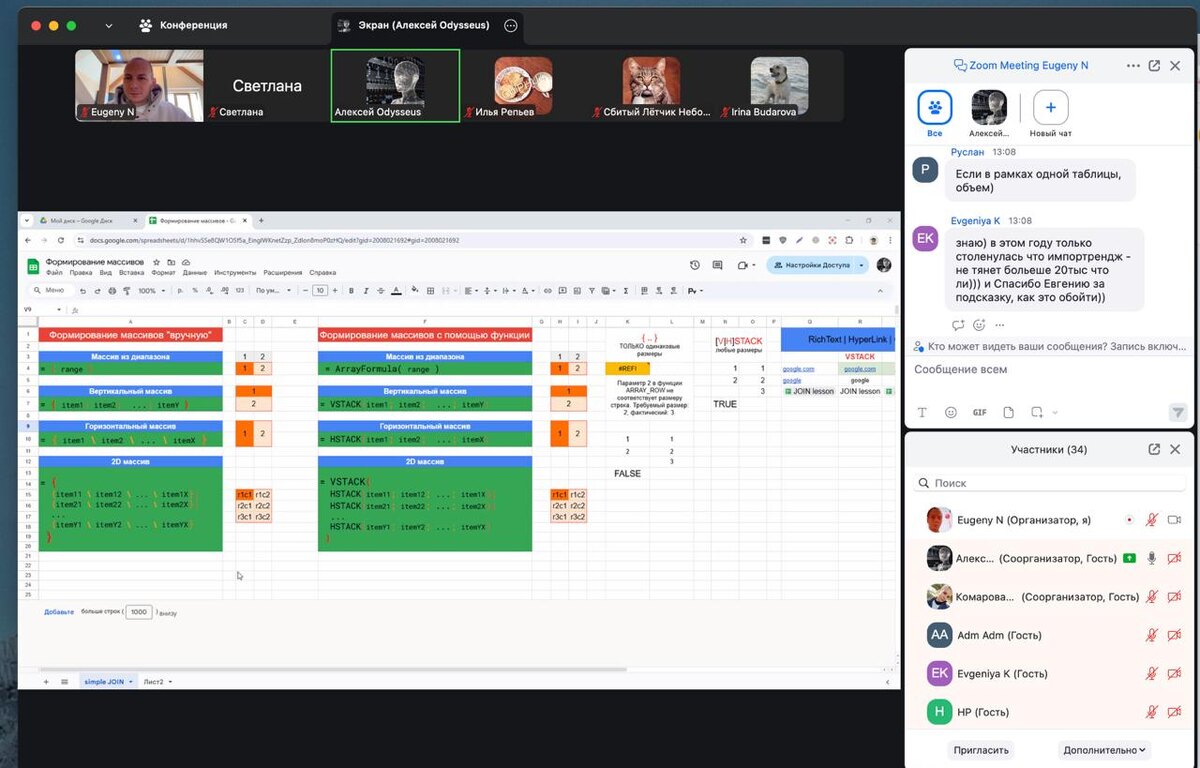 34 человека в зале (большой школьный класс :) и началась часть про формулы - собираем массивы! Присоединяйтесь, вебинар будет идти еще час! https://us06web.zoom.us/j/89781631520?pwd=cphbB5aEtstNHcYuSmy2mlL6CRxEob.1