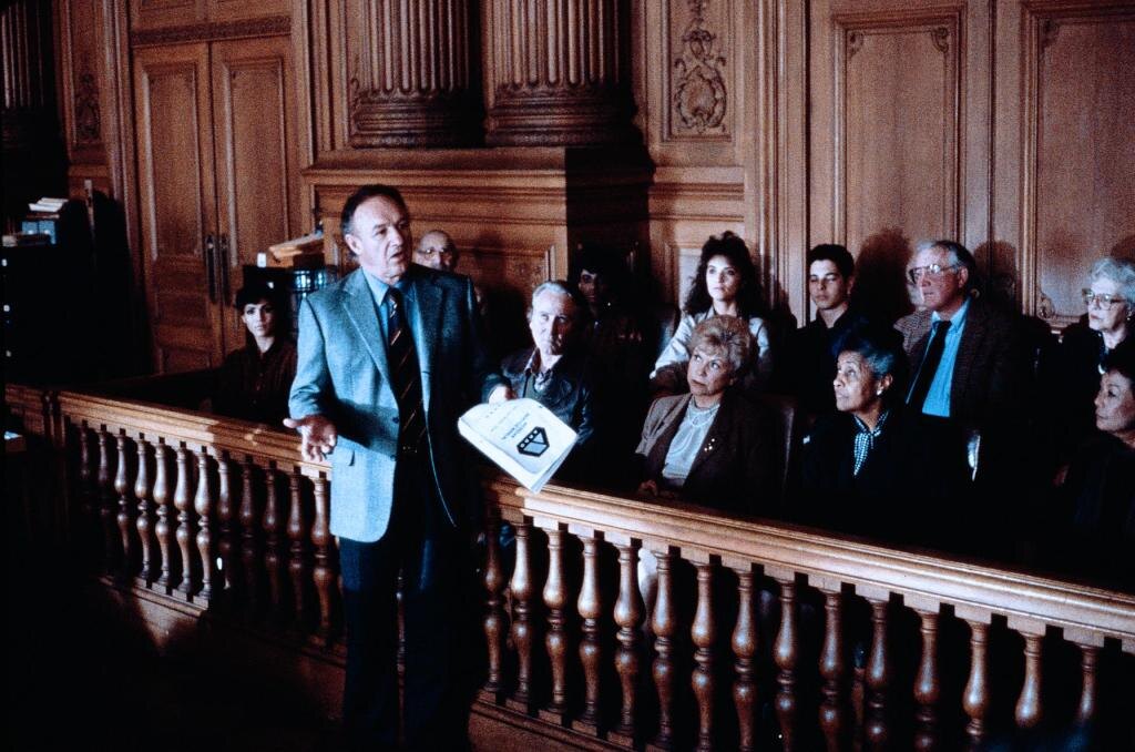 Все было бы достаточно банально в фильме согласно сюжетной линии, но режиссер развертывает перед зрителем и параллельную линию, которая фильм «оживляет». Речь идет о семейной обстановке у главного персонажа фильма, - адвоката, которого играет актер Джим Хэкмен, который умер не так давно — в феврале 2025 года в возрасте 95 лет. Хэкмену очень удаются тяжелые драматические роли. Дело в том, что у персонажа Хэкмена есть взрослая дочь, с которой у него весьма сложные отношения. Дочь тоже адвокат, но начинающий, она работает в той адвокатской конторе, которая является конкурентом конторе ее отца, но в данном случае не только конкурентом, но и противником, поскольку контора, в которой она работает является защитником интересов автомобильной корпорации, на действия которой подан тот самый коллективный иск. Такая вот загогулина психологическая получается. А между дочкой и мужем — мать, - она не имеет никакого отношения к юридическим делам, она художник. Мать — единственное, что в начале фильма связывает дочь и отца. Мать сильно переживает за то, как отец и дочь ведут себя по отношению друг к другу. Настолько сильно, что умирает в середине фильма… прямо в здании суда. На глазах у всех, в том числе дочери и мужа. Очень тяжелая драма, но весьма жизненная.