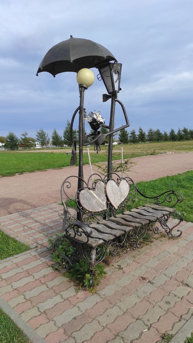 Это обычная на первый взгляд скамейка в парке Ленинградской области.