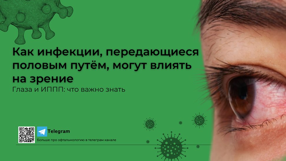 Сексуальное здоровье связано не только с состоянием репродуктивной системы. Некоторые инфекции, передающиеся половым путём, способны поражать глаза и вызывать воспалительные заболевания, которые в ряде случаев приводят к стойкому снижению зрения. Риск заражения снижается при использовании средств защиты, соблюдении гигиены и своевременном обращении к врачу. Герпес