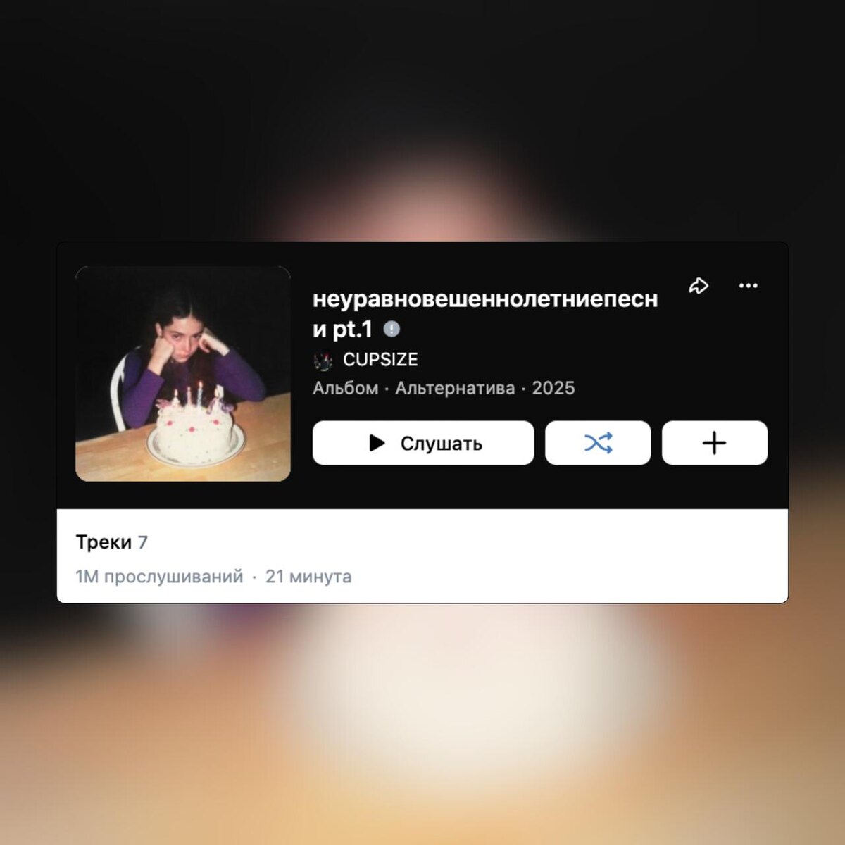 🍋 🎵 Осенний мини-альбом CUPSIZE «неуравновешеннолетниепесни pt.1» преодолел отметку в 1 млн. прослушиваний на официальном плейлисте в VK Какой релиз CUPSIZE, вышедший в 2025 году, понравился больше? ❤️ — в моих легких выросли цветы 🔥 — неуравновешеннолетниепесни pt.1 @mainstreamusic