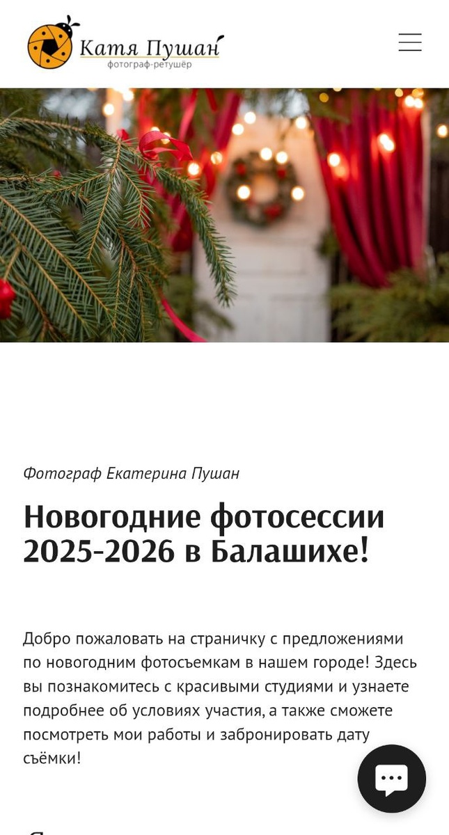 Друзья, привет! 👋 Свободных окошек на съёмки все меньше, а мне бы хотелось сделать для вас красивые новогодние кадры в этом сезоне 🧡💫🎄 Поэтому ловите свежую информацию по съёмкам в Балашихе с ценами, фото, видео и отзывами об участии в моих съёмках 🎬 🧡💫🫶🎄 Всем отличных выходных ✨ Переходите по ссылочке 👇 https://pushanfoto.ru/novogodnie-fotosessii-v-balashihe