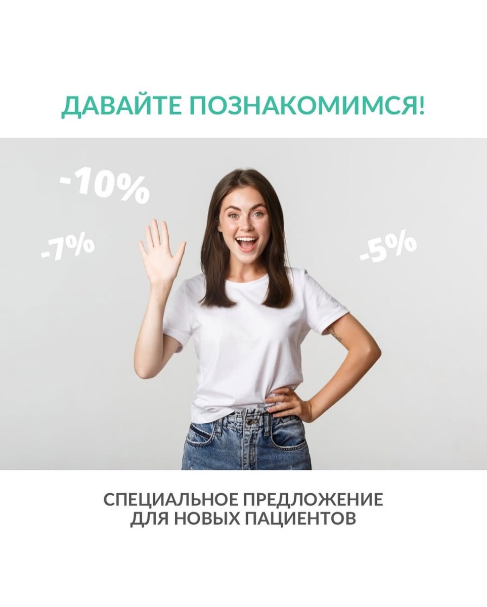 **Срок действия скидки 3 месяца, со дня первого посещения клиники.