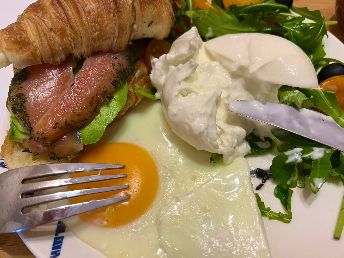 Я часто показываю, что мы едим, и этим даю повод читателям обсудить наши вкусовые предпочтения. И многих поражают сочетания продуктов, которые я подаю к завтраку. Например, довольно часто в одной тарелке у нас бывает рыба с сыром И это удивляет людей: Только прочитав этот комментарий я поняла, почему в мне в кафе в Питере принесли яйца с лососем без творожного сыра, я была уверена, что это само собой разумеющееся и одно подразумевает другое. Но оказалось, что у кого-то это классическое сочетание вызывает расстройство желудка. Чего только не бывает! Получается, что с такой особенностью пищеварения не получится насладиться ещё одним моим любимым блюдом - роллами с творожным сыром и рыбой. Хорошо, что у нас таких проблем нет, едим с аппетитом, животами после не мучаемся. Впрочем, сыр всегда можео заменить маслом, думаю это не должно вызвать дискомфорта в желудке, как считаете? Хотя, вот на фото кроме рыбы и яиц на завтрак были ещё бутерброды с печеночным паштетом и свежие сливы. Т